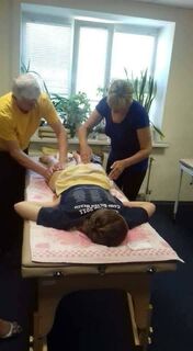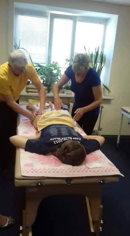 - студенти виконують техніки масажу від голови до ніг один на одному, щоб відчути їх ефект та цінність;