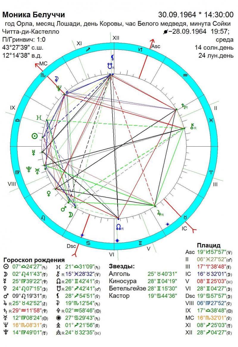 - Фіктивні планети: Ліліт, Селена, Місячні вузли.