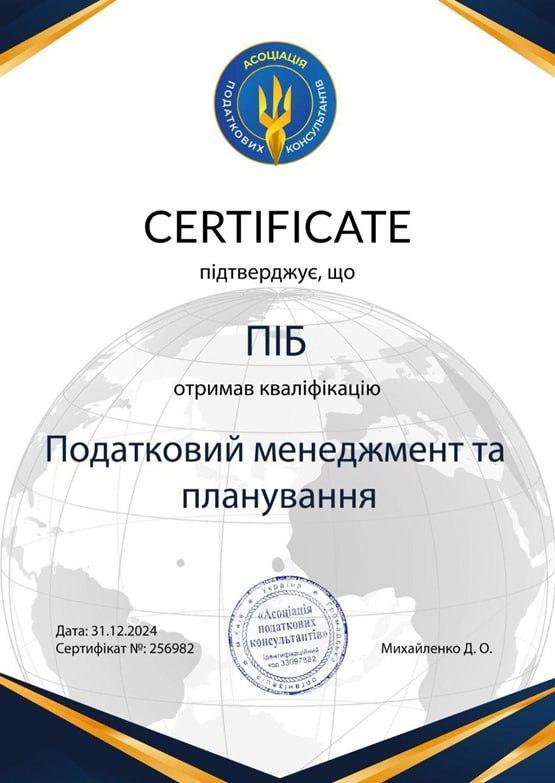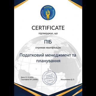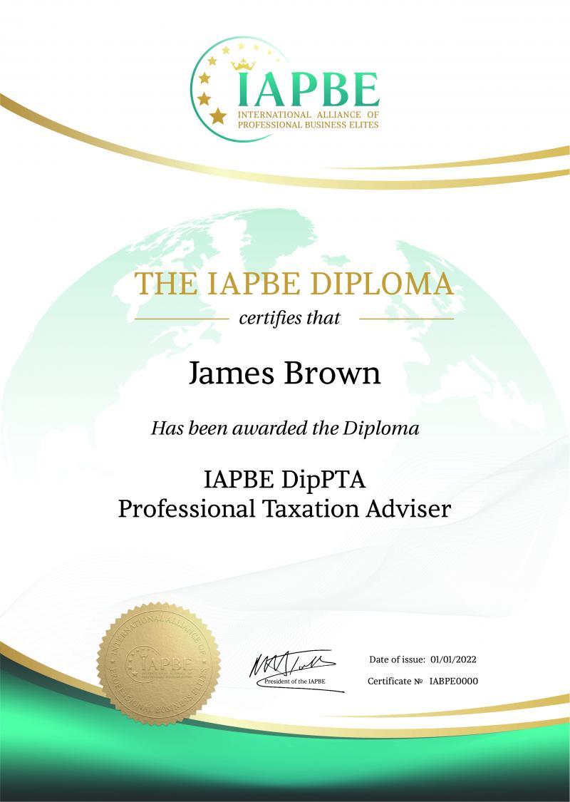 Міжнародна програма "Професійний податковий радник", кваліфікація "Податковий менеджмент та планування" від Міжнародного Альянсу Професійної Бізнес-еліти – IAPBE