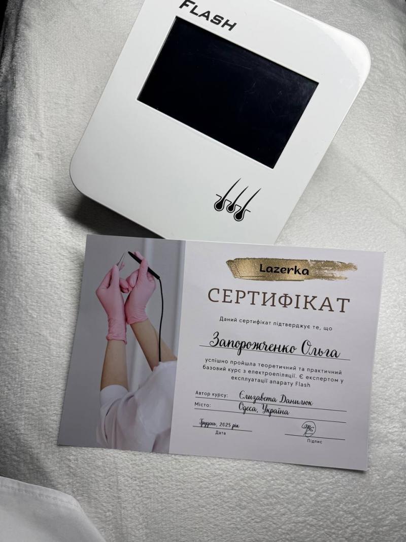 Викладач: Данилюк Єлизавета, косметолог, спеціаліст лазерної та електроепіляції, має вищу медичну освіту.